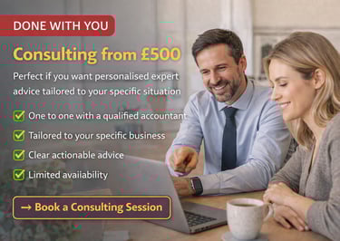 Sometimes you need more than a guide. You need someone to sit down with you, look at your specific numbers, and tell you exactly what to do. Our one to one consulting sessions give you direct access to a qualified accountant who will give you clear, honest, personalised advice with no jargon and no waffle.