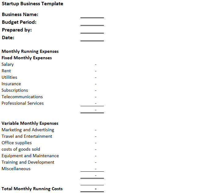 By including monthly costs in your start up budget for a certain period of time, you will ensure you have some cash in the bank to pay your running costs and have some breathing space while you acquire clients and customer and your business takes off.