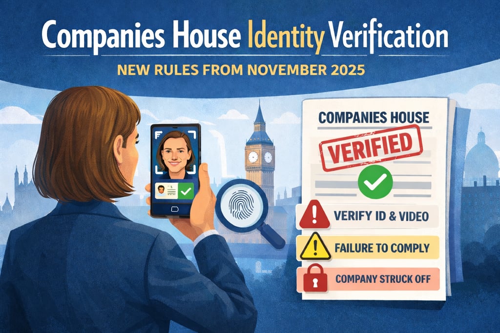 From November 2025, UK company directors and PSC must complete mandatory identity verification. These new rules aim to tackle fraud but also introduce important compliance requirements. This guide explains what the changes mean and how to stay compliant.